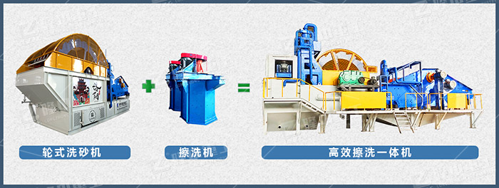 將傳統擦洗機與輪式洗砂機相結合,能夠使物料與物料充分摩擦去除表面附著物,同時采用高速旋轉的攪拌軸,使清洗效果顯著提高