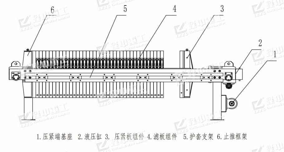 廂式壓濾機是利用濾布兩邊的壓力差,迫使物料中的J大部分水分透過濾布,流出機體外,而物料被阻隔在濾室內形成濾餅,以達到過濾的目的。由于在過濾過程中濾布兩邊存在著較大的壓力差,提高了過濾速度降低了濾餅的含水率。